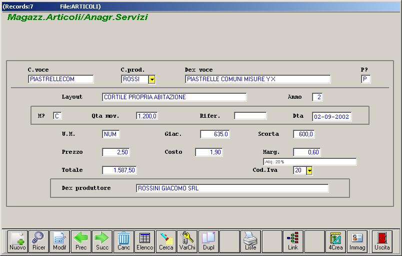 Il programma permette la gestione clienti e fornitori, articoli e materiali coi prezzi unitari, costi manodopera ecc. Determinazione preventivi dettagliati per piccoli lavori.