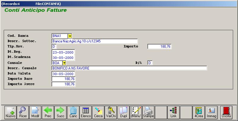 Registrazione di tutti i movimenti definitivi e provvisori sui conti correnti.