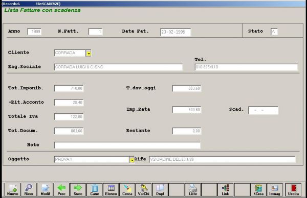 Dettagli sul programma FATTURAZIONE CON SCADENZARIO