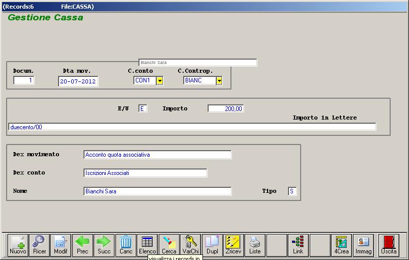 È possibile gestire i movimenti di cassa, utilizzando eventualmente dei conti inerenti alla propria organizzazione.