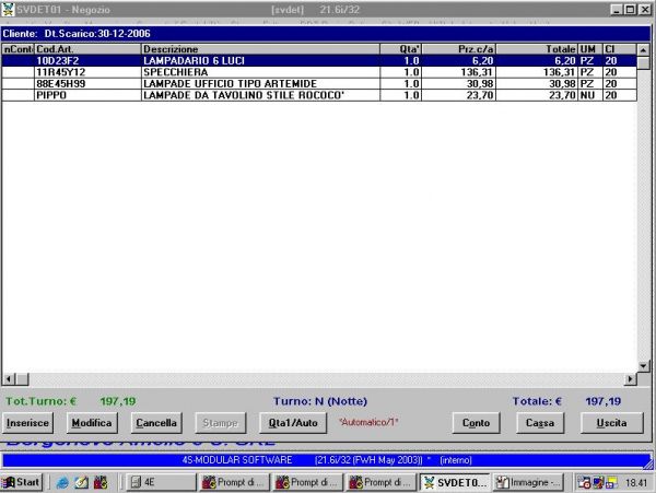 Il programma gestisce le problematiche generali di un negozio al dettaglio: gli acquisti e il magazzino, la vendita e le liste di supporto per le registrazioni contabili e per l'IVA. IN PARTICOLARE QUESTA VERSIONE GESTISCE FINO A QUATTRO TURNI DI CASSA.