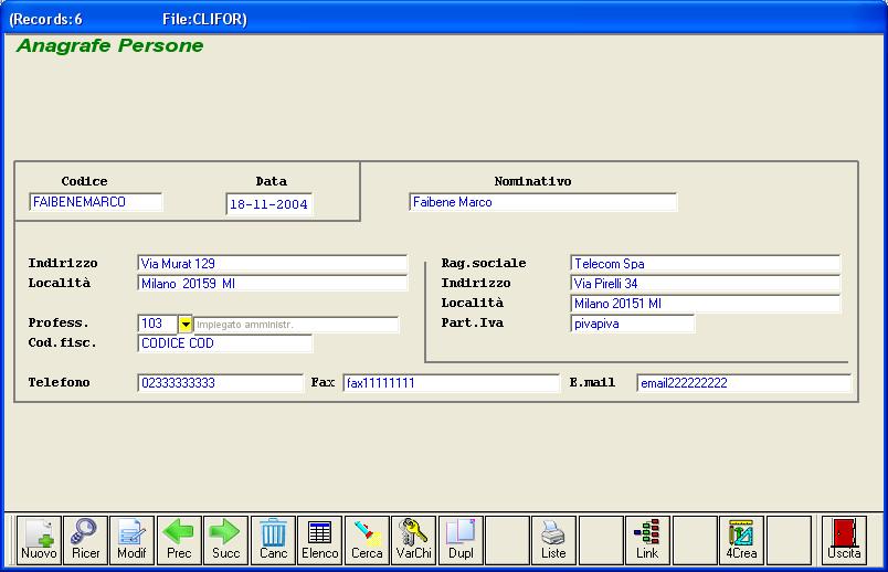 Per il singolo iscritto alle manifestazioni, oltre le generalità anagrafiche e fiscali, è possibile rilevare la professione e l'azienda o l'ente di appartenenza nonchè la documentazione che gli deve essere inviata. Per ciascun iscritto alle manifestazioni e ad eventuali sessioni a partecipazione selezionata, è possibile ottenere le tessere con il codice a barre, nonchè eventuali etichette da applicare sui badge.